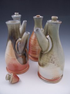 Sherry’s pieces are individually thrown on a potter’s wheel and/or hand built using white stoneware or porcelain. Most are a combination of wheel thrown work that has then been altered. Nothing is wasted, all clay is recycled, what does not get fired becomes another piece. The pieces not meeting selling standards can be found as garden art, mosaics & stepping stones around her studio grounds. All work is fired to 2400 degrees F and is oven, dishwasher & microwave safe, except Raku which is intended for decorative purposes only. The work on display will be from Sherry’s two most recent wood firings.