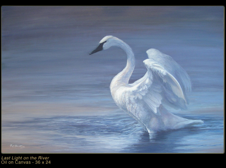 This painting, entitled “Last Light on the River”, is oil on canvas 36″ X 24″ and is available at the gallery.