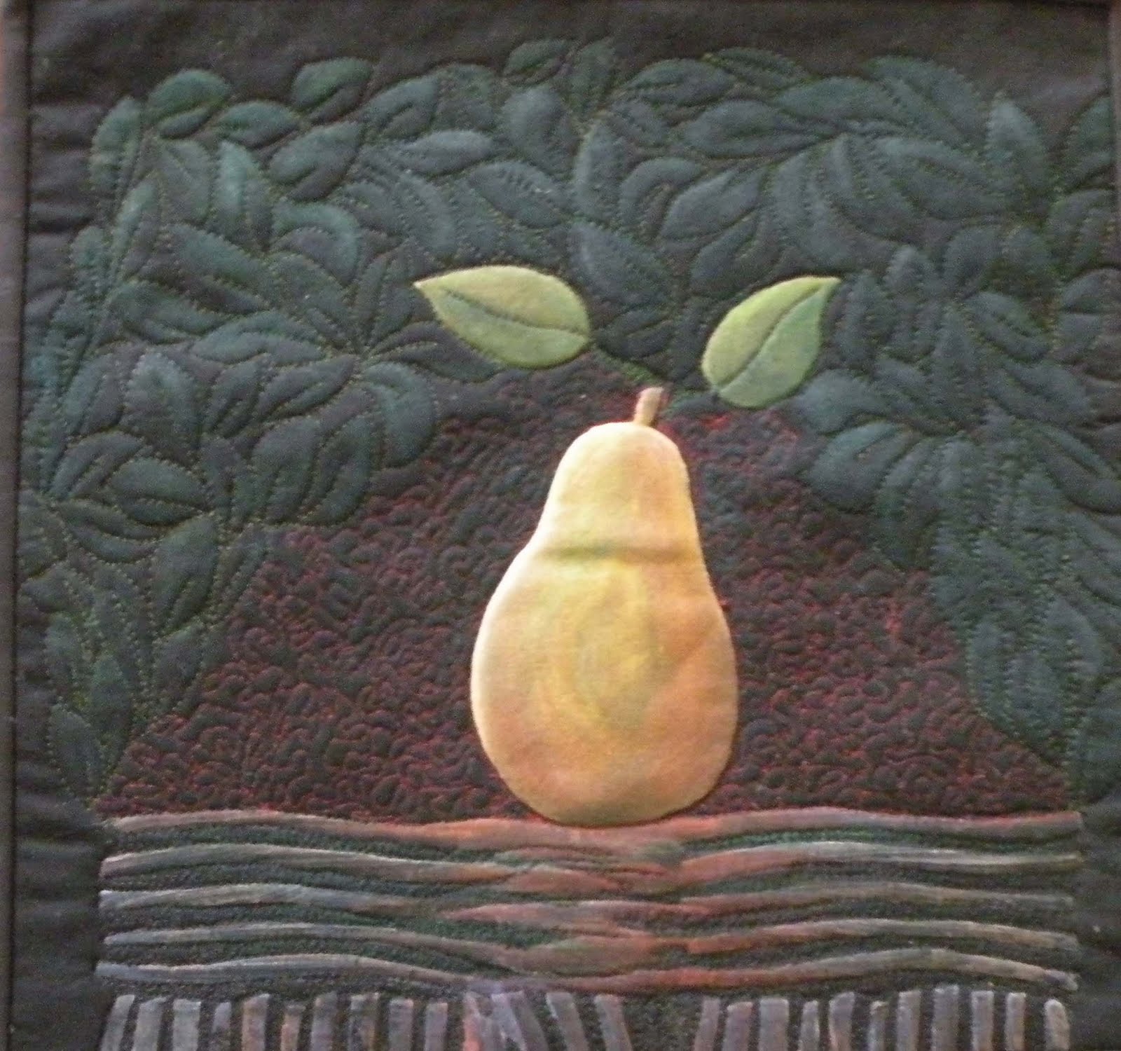 Sally’s interpretation of the theme was to think about green. To think about the meanings of green, the heart chakra, color of hope and renewal. Sally talks about her work “I like to create pieces that make me smile; pieces that invitee you to look closer, read the little messages and enjoy the details. These pieces are inspired by nature, labyrinths, social awareness, and of course, humor. I like to experiment with texture. Techniques include use of fiber, beads, wire and photography as well as fabric to capture ideas.”