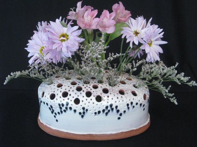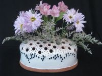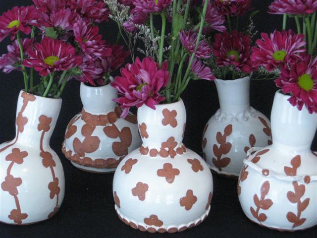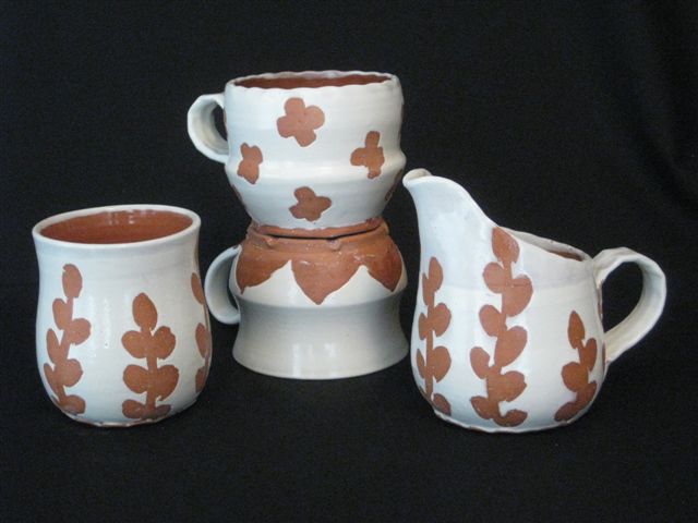 Her show, Altering Forms and Space at Stumptown Art Studio explores the way in which functional ceramics are displayed and the alteration of ceramic forms that are used in daily life. Items that are normally hidden away in cupboards are displayed in a fashion that is suitable for a gallery setting and the home. Seguin works with wheel-thrown and altered functional forms, which she manipulates while the clay is still soft, using a variety of hand-building techniques to create a gentle, feminine quality. This quality is also present in her decorative surfaces, where she often incorporates images inspired by the garden.