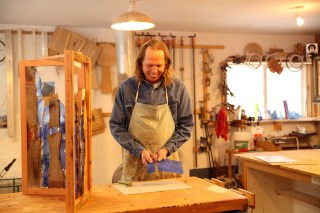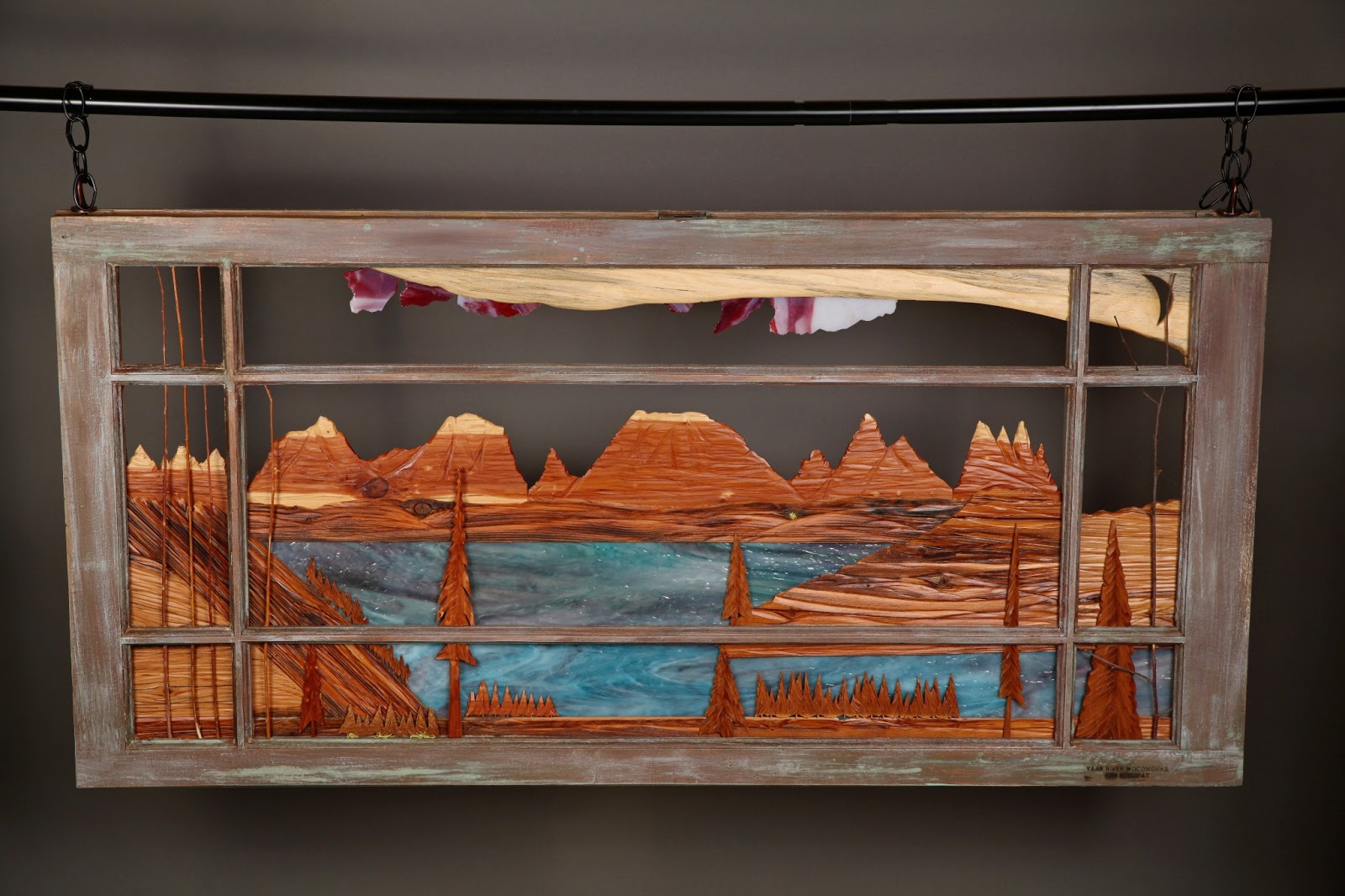 The Purple Pomegranate, a fine craft specialty store, is featuring work by wood and glass artist, Edd Kuropat during the month of May. The exhibit will feature works that were inspired by his life in Western Montana. With studios in the Yaak and the Flathead valley, he has been influenced by the flowing rivers and streams to the high mountains of Montana, creating the landscapes we see around us with reclaimed wood, metal and stained glass. Edd says “By using aged, reclaimed local wood and metal, I feel I create the light and texture that is seen and felt in the landscapes around us. Combining this with various types of glass, I create the ever changing refractive light that gives us the beauty of a misty sun rise on a river to the glory of an alpenglow sunset over the Rocky Mountains.”