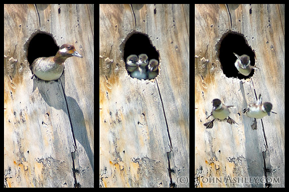 “Leap of Faith” captures one of those moments in life that we’ve all experienced. A mother Bufflehead duck leads her newly hatched chicks from their nest, 40 feet above the ground, near a lake west of Kalispell. The ducklings are flapping their wings, but they’re not managing anything resembling flight.