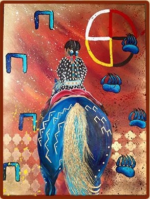 Browning artist Valentina LaPier shares the landscape of her heart through her painted images, weaving together her life as an artist.  Her artwork has become a vehicle by which she educates both Native and non-Native people around the world on the history of the different tribal images used in her work.