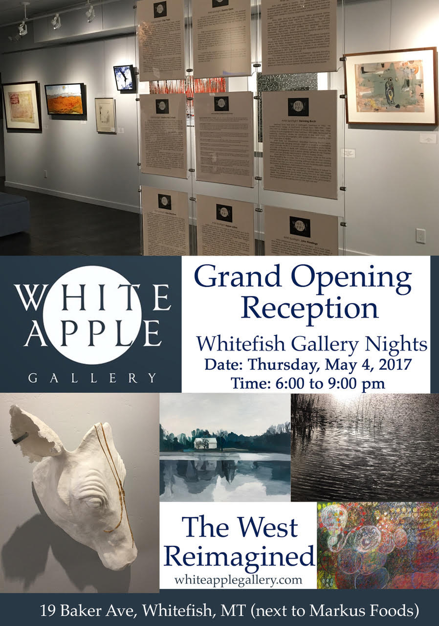 White Apple Gallery is pleased to introduce works from over a dozen contemporary artists that have never shown before in Whitefish, as well as a small group of local artists exhibiting works seen here for the first time.