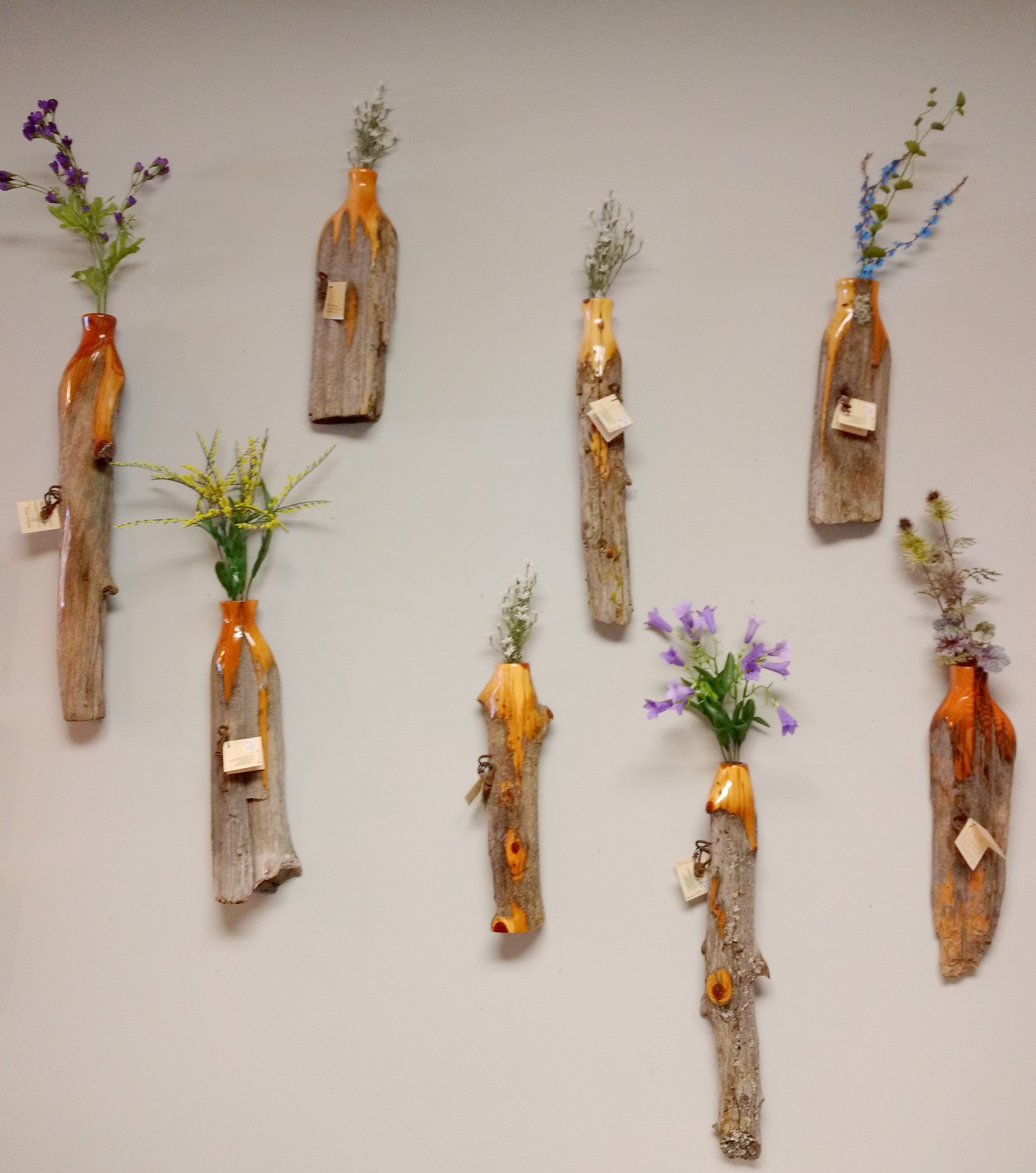 The Purple Pomegranate, a fine craft specialty store, is featuring work by Lakeside resident, Dixie Wajdic during the month of June. Dixie’s woodworking shop overlooks beautiful Flathead Lake and surrounding mountains and this view helps to inspire her to create one of a kind wood items. A friend gave her several fence posts in the mid nineties and challenged her to create with them. After cutting open a fence post, Dixie was amazed at the natural color and beauty inside along with the unique character outside. Thus her business, The Boundary Line, was born.