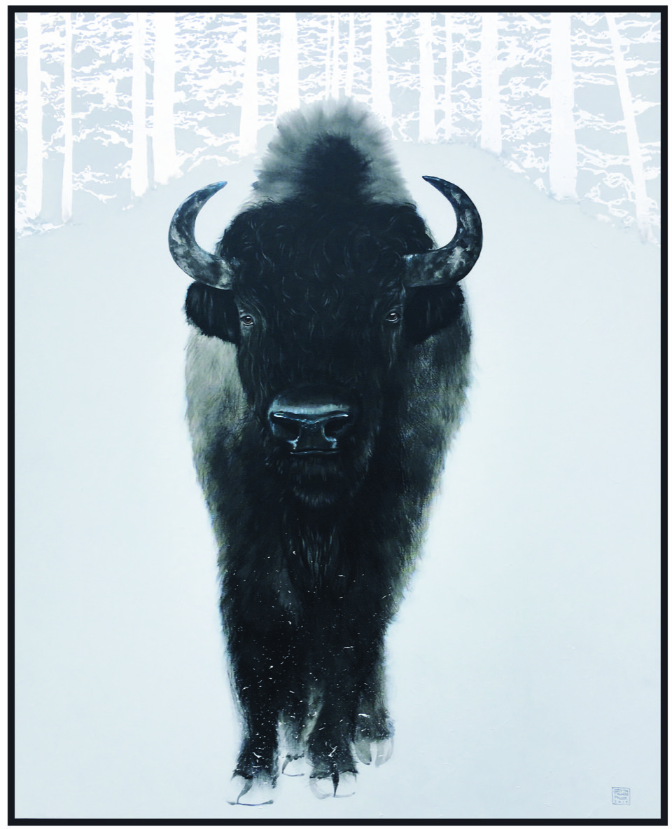 Silver Buffalo 2019 / India Ink and Silver Leaf on Canvas 4’x5′